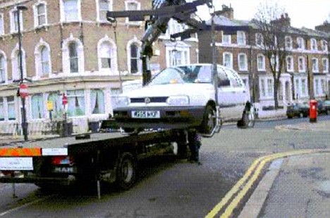In fact the car had been carefully lifted out of the way for the double yellows to be painted in Gordon Grove in Camberwell, then replaced on the new restrictions by the contractors responsible.